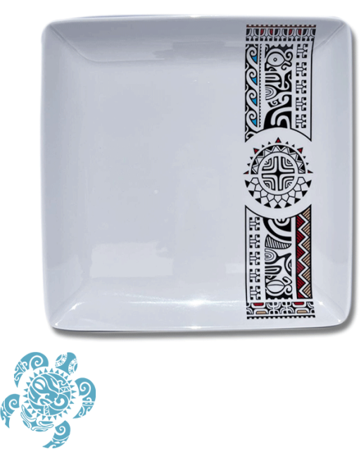 Notre assiette au motif tatouage Polynésien, mettra vos mets en valeur et habillera avec élégance, raffinement votre table de fête comme celle du quotidien.
