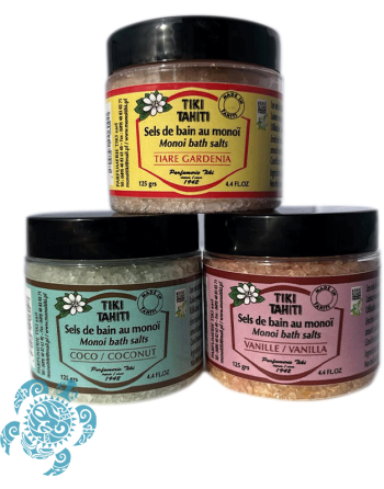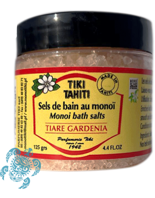 Nos Sels de bain Tiki Tahiti à la fleur de Tiare de Tahiti parfumeront délicatement votre bain, vous transportant directement dans les eaux translucides des lagons polynésiens.