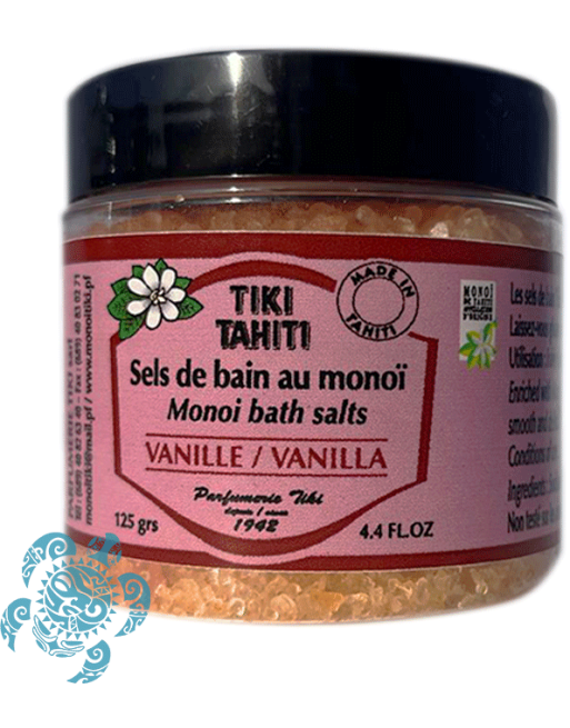 Nos Sels de bain Tiki Tahiti à la Vanille de Tahiti parfumeront délicatement votre bain, vous transportant directement dans les eaux translucides des lagons polynésiens.